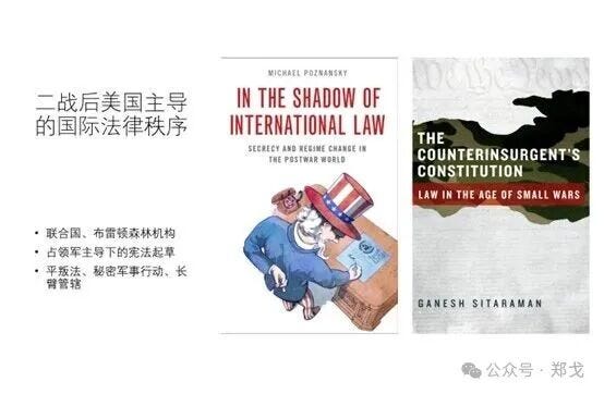 The figure shows a PowerPoint slide I have used in my Constitutional Law and Law and Development courses since 2017. My American doctoral student, 贲流, first alerted me to America’s Counterinsurgency Law. This is not a branch of law, but rather a theoretical description of U.S. “foreign-related rule of law.” U.S. domestic law contains many laws targeting other sovereign states and their regions. According to these laws, the legitimate governments of other sovereign states are sometimes labeled as “insurgents,” while at other times rebels in other countries may be designated as “insurgents,” thus revealing that the order disrupted by “insurgents” is not the domestic order of a specific sovereign state, but rather the U.S.-led global order.