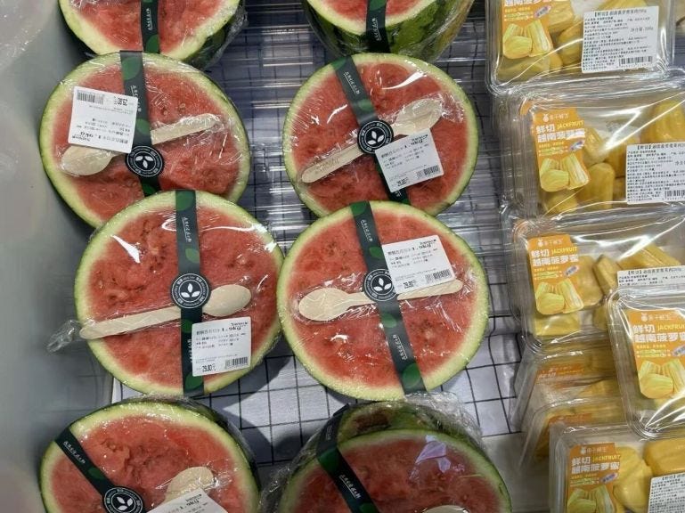 Today, I’m sharing a conversation that pulls back the curtain on the life of a fresh produce sorter—the person literally running through the aisles to fill your order. I don’t want to ask the “at what cost?” kind of question, because it’s actually a relatively high-paying job for those without a college diploma. I have some reservations about their views, such as the notion that produce from wet markets is healthier than that from e-commerce platforms. However, I believe these essential workers’ own experiences should be heard.