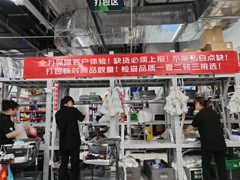 He Siqi: I didn’t have WeChat Steps enabled at that time, but my colleagues all said they did 30,000 steps a day. Running was pretty much the norm for about two-thirds of our time, because the other one-third was off-peak, when we could sit and rest. But once the peak period hit, we had to start running. Let me give you an example: one day, the supervisor sent a message in the group chat saying that another store had already had an incident where a sorter knocked over an elderly person. He told everyone to be careful while picking and not to bump into customers. Because the layout of 7Fresh supermarkets is such that the front is the sales area, and the back is the warehouse. We often need to go to the front sales area to pick items, so we have to run even when it’s crowded. The most annoying time was around 8 PM during discounts. Many elderly people come for the discounted items, and we just can’t get through.