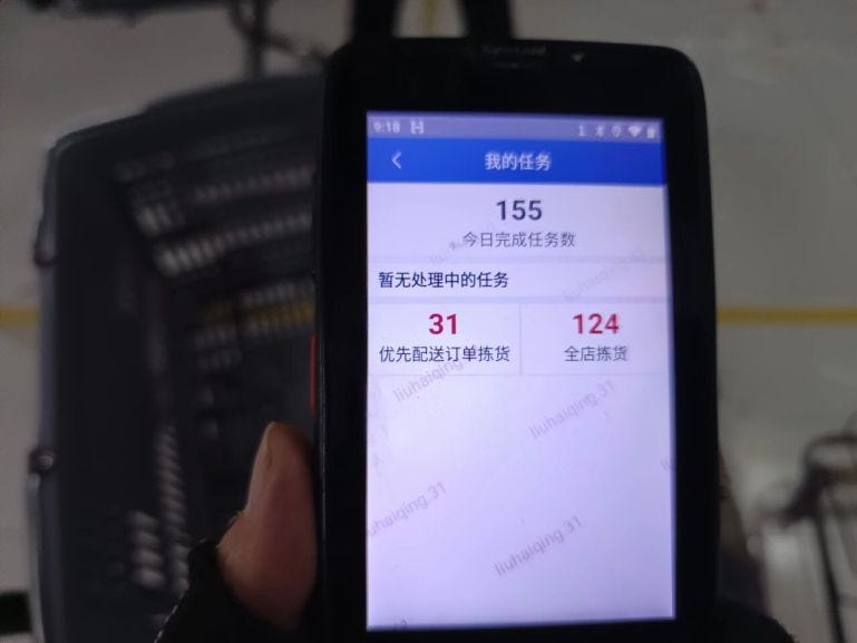 Tian Le: This PDA locks in the employee’s time. It makes it easier for the fresh produce platform to use this method to push employees to work more efficiently. Regular supermarket employees generally wouldn’t be as stressed as sorters.